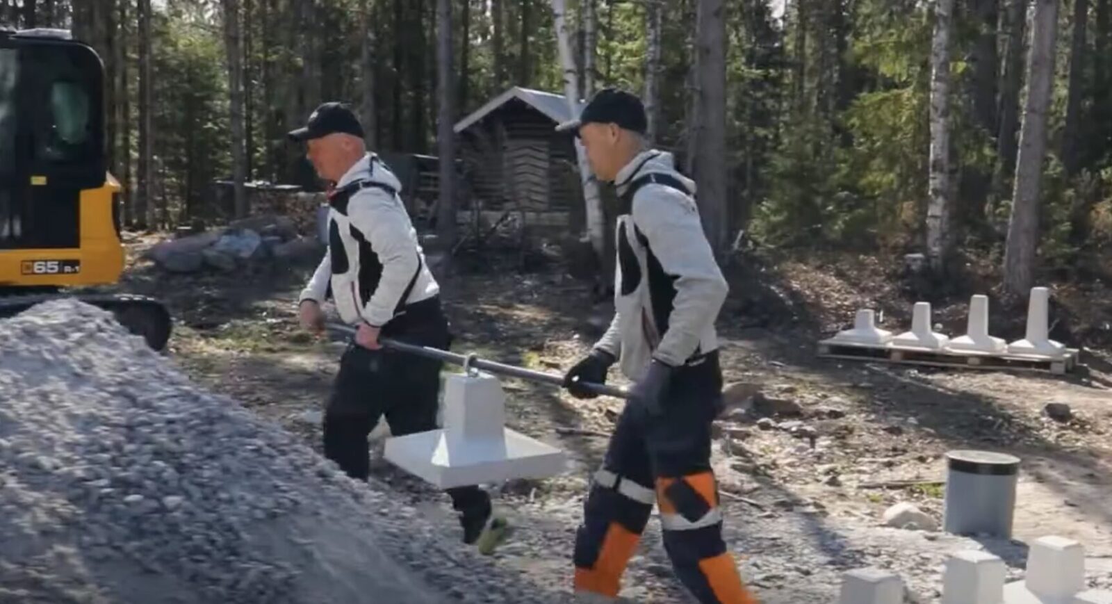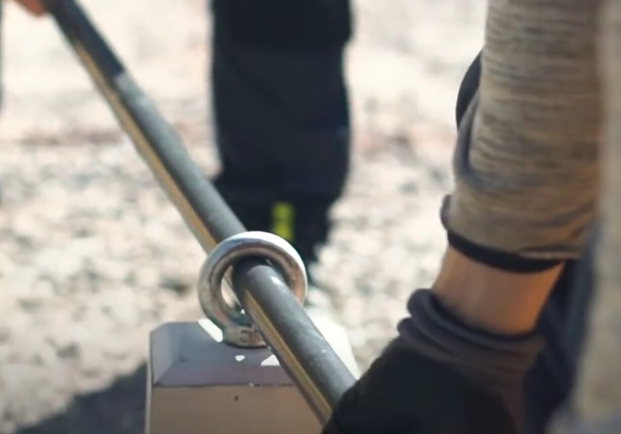 Med lyftöglan dimension M20 som är fastskruvad i grundplinten kan man enkelt förflytta plintarna till rätt plats.