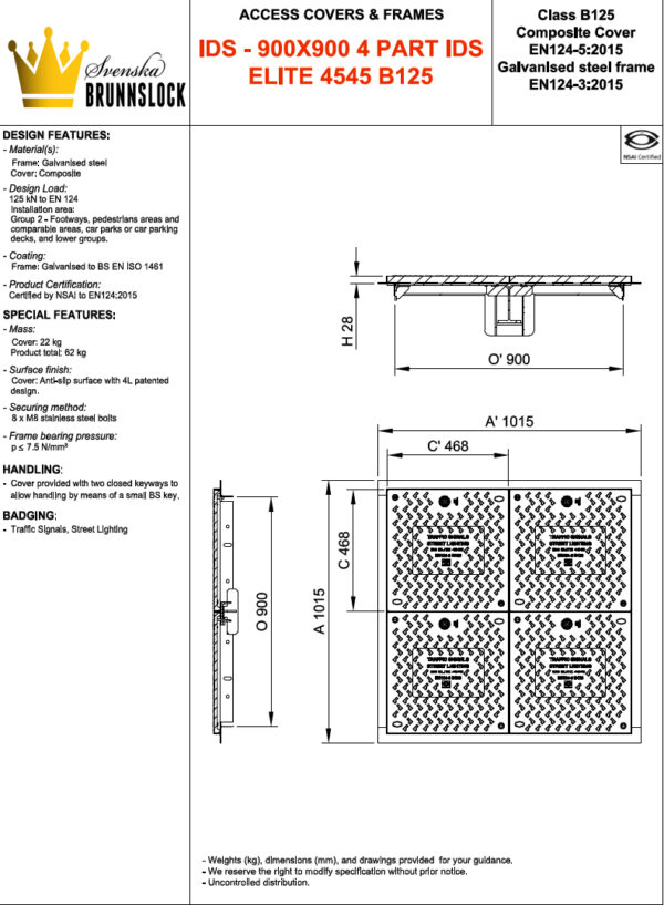 Öppningsmått: 900×900 mm (utvändigt mått ram: 1015×1015 mm)