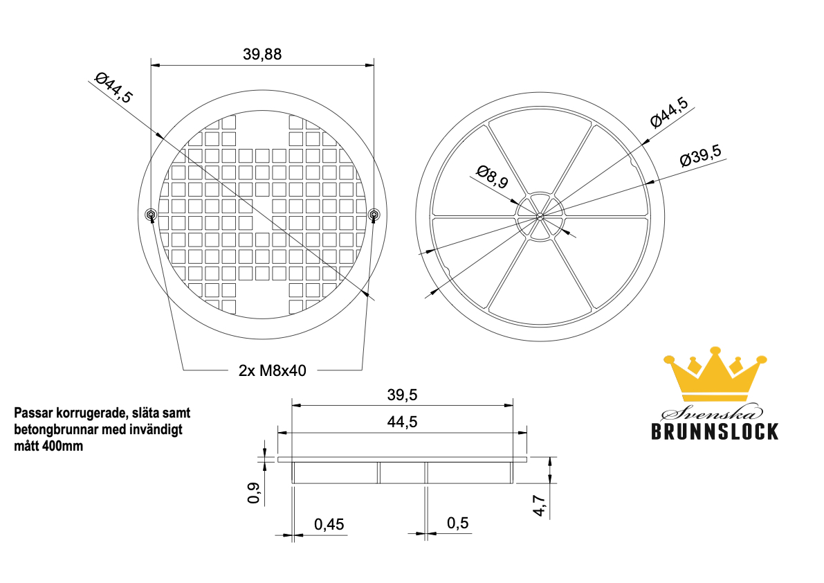 Passar till korrugerade, släta samt betongbrunnar med invändigt mått 400mm.