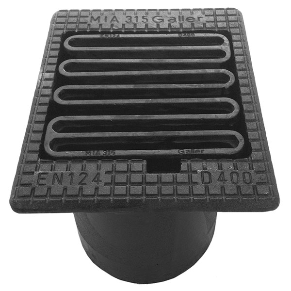 Komplett 315 gallerbetäckning i segjärn med hög hals, avsedd för plastbrunn Ø400 mm eller Ø315 mm. Ram och teleskoprör gjutet i ett stycke. Rektangulärt galler med flexlås och punktuppläggning.
