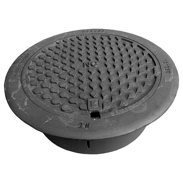 Täydellinen kelluva A640-kansi pallografiittivaluraudasta, tarkoitettu Ø640 mm betonikaivolle. Kansi, jossa on kolme (3) lukitusvartta, polyuretaanitiiviste ja tiivis sylkyreikä.