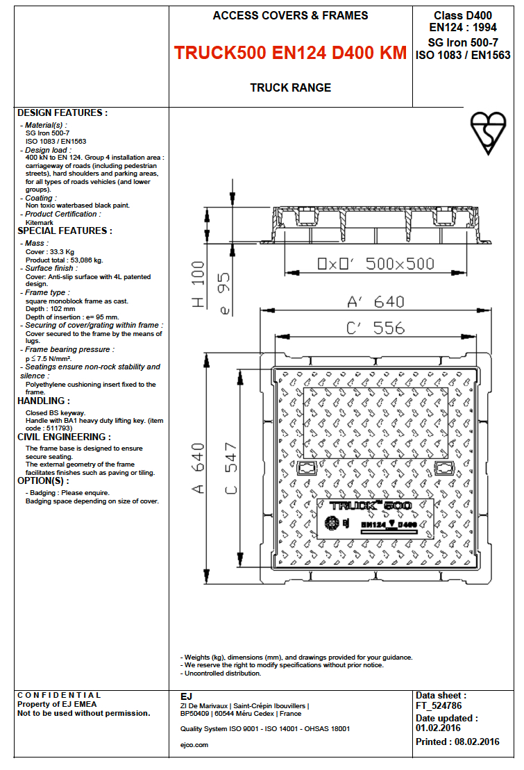 Sisämitat: 500 × 500 mm.