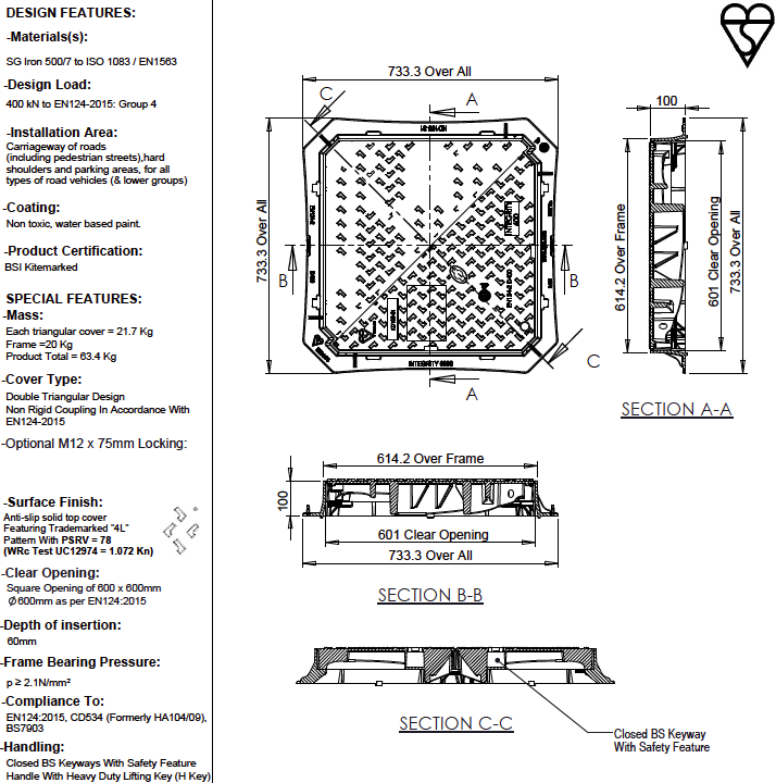 Sisämitat: 600 × 600 mm.