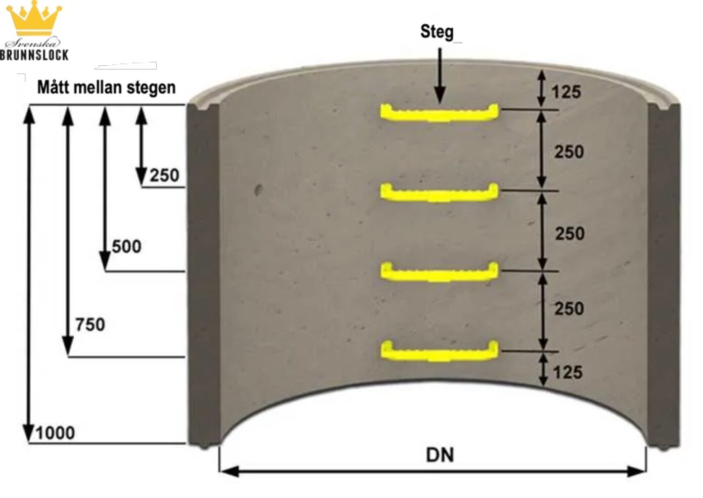 CE-hyväksytyt tarkastuskaivon askelmat standardin EN 1301:2005 mukaisesti. Valmistettu 12 mm:n teräsytimestä ja päällystetty polypropeenilla (PP), joten ne sopivat vaativimpiinkin olosuhteisiin.