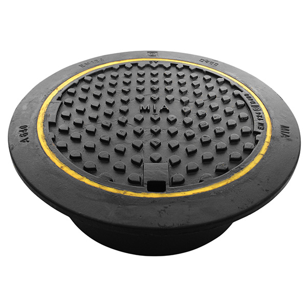 Täydellinen säädettävä/kelluva A640-kansi pallografiittivaluraudasta, tarkoitettu ø640 mm:n betonikaivoille. Kannessa on kolme lukitusvartta, tiivis sylkyaukko ja kulumis-/vaimennuskyky polyuretaanista. Kansi on saatavana myös ritiläkannella (tuotenro: 7059838-G). Mukautettu merkintä on mahdollinen, esim. logo tai kaupungin vaakuna.